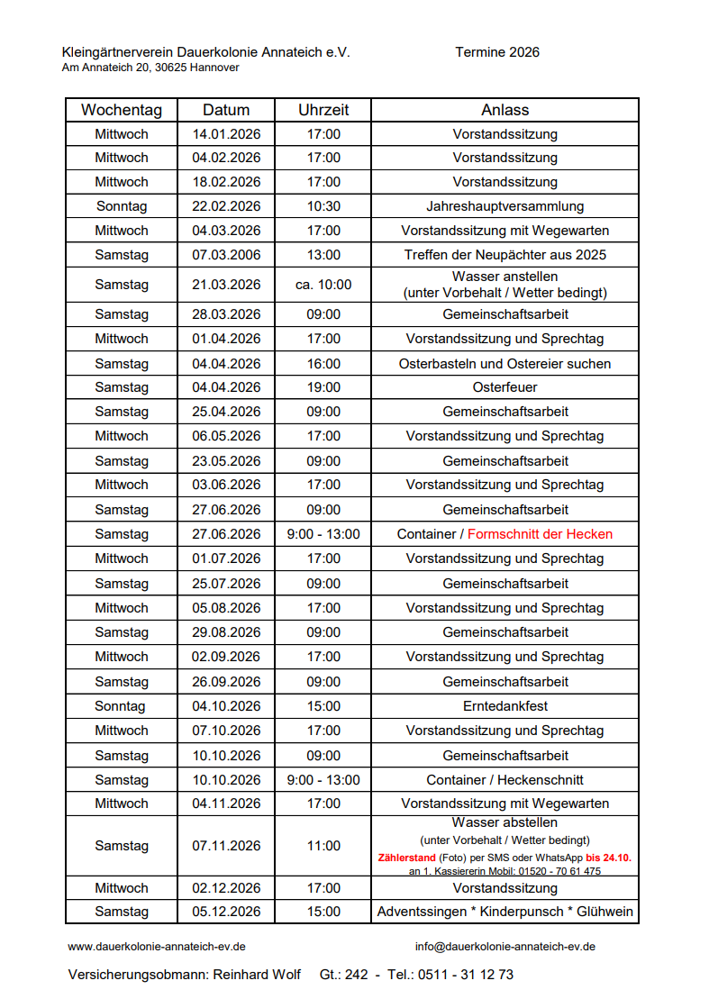 Termine 2026 - Dauerkolonie Annateich